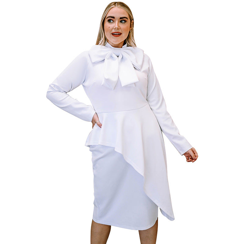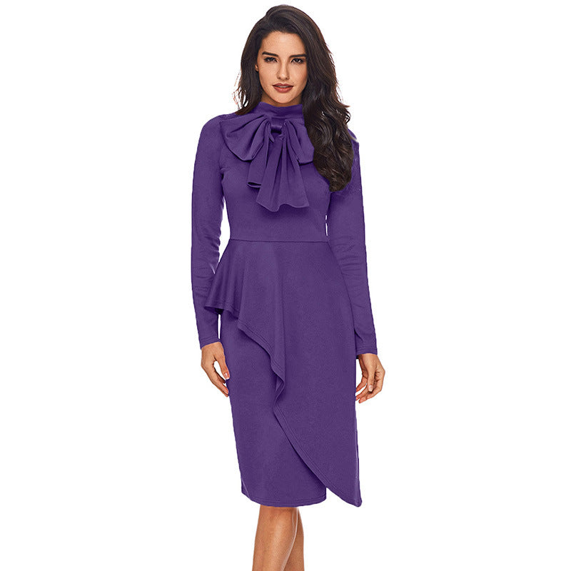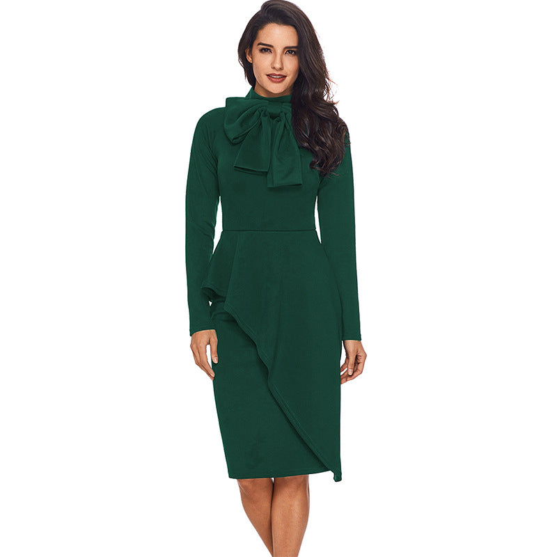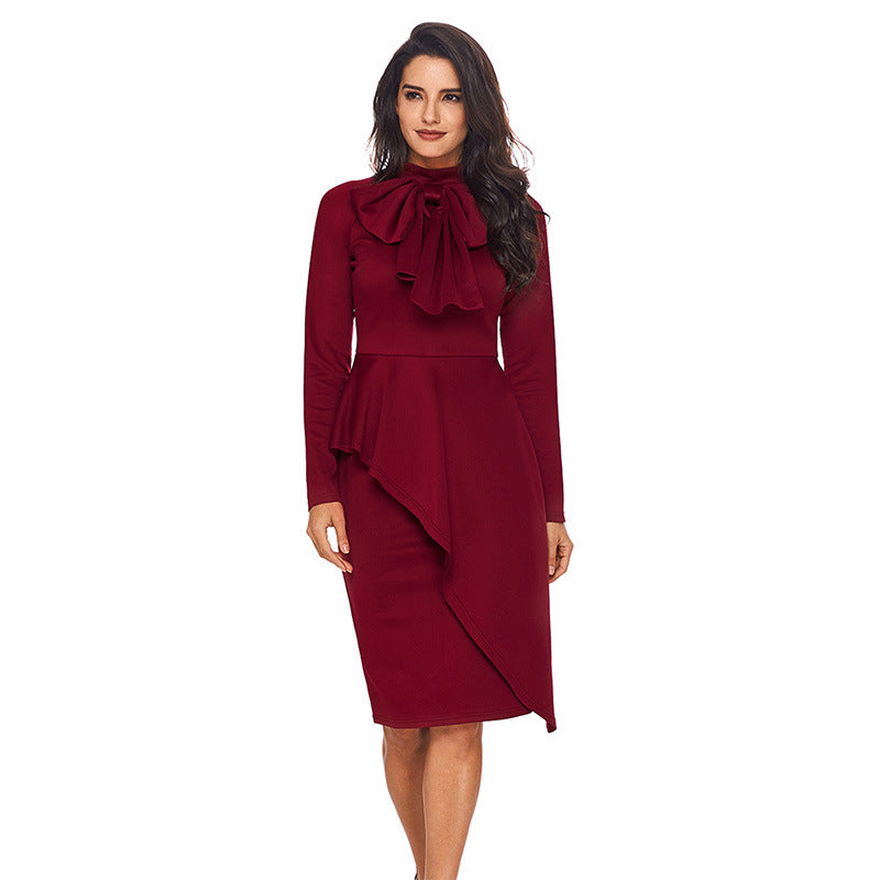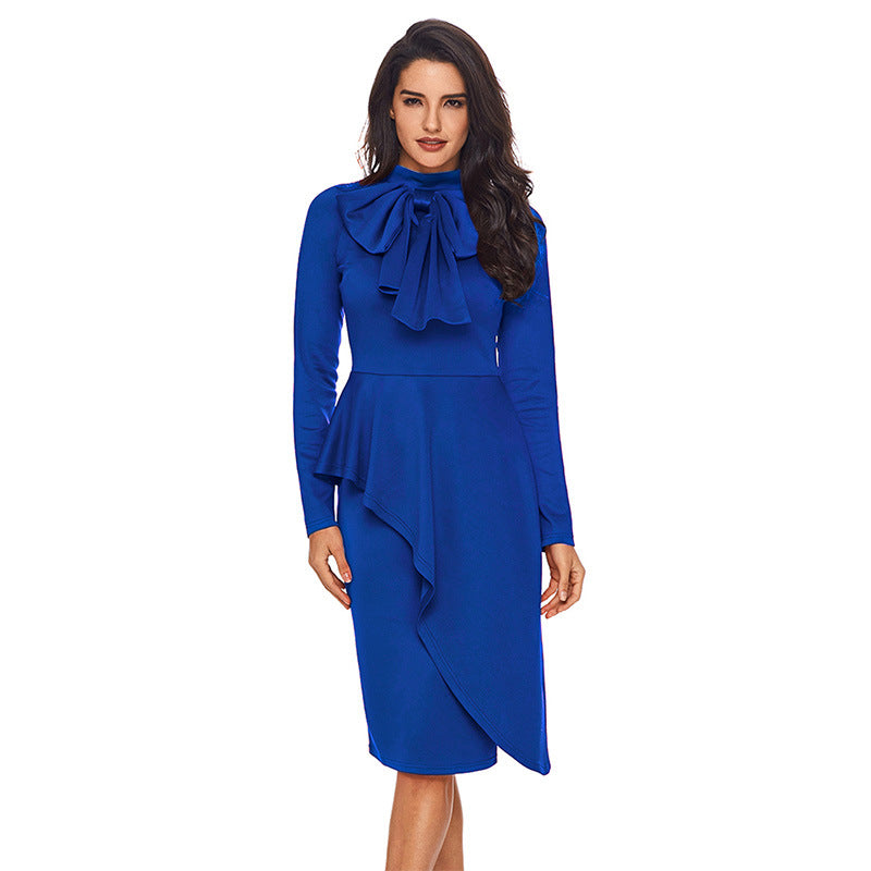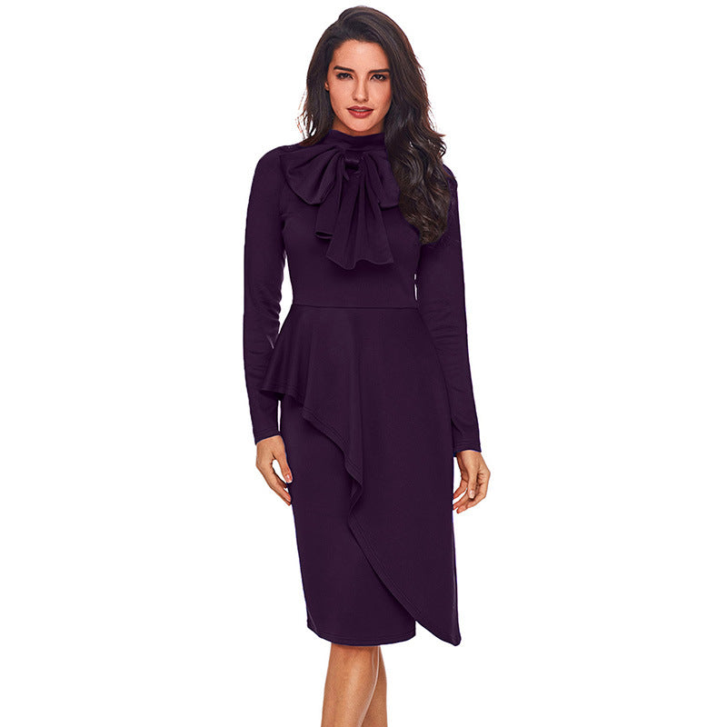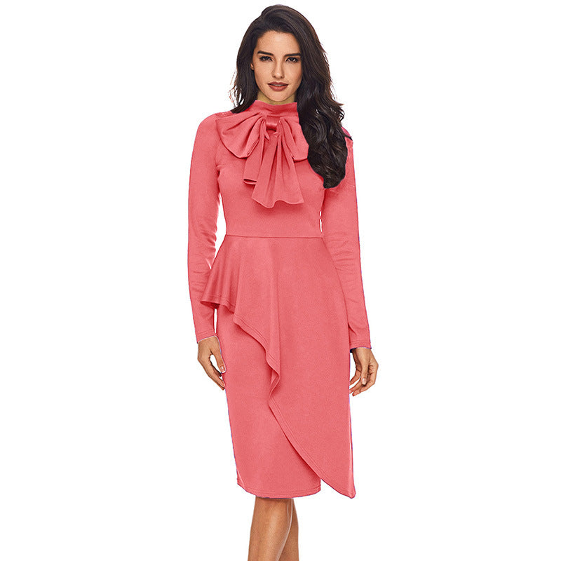 KIKIMORA Bowknot Neckline Long Sleeve Dress