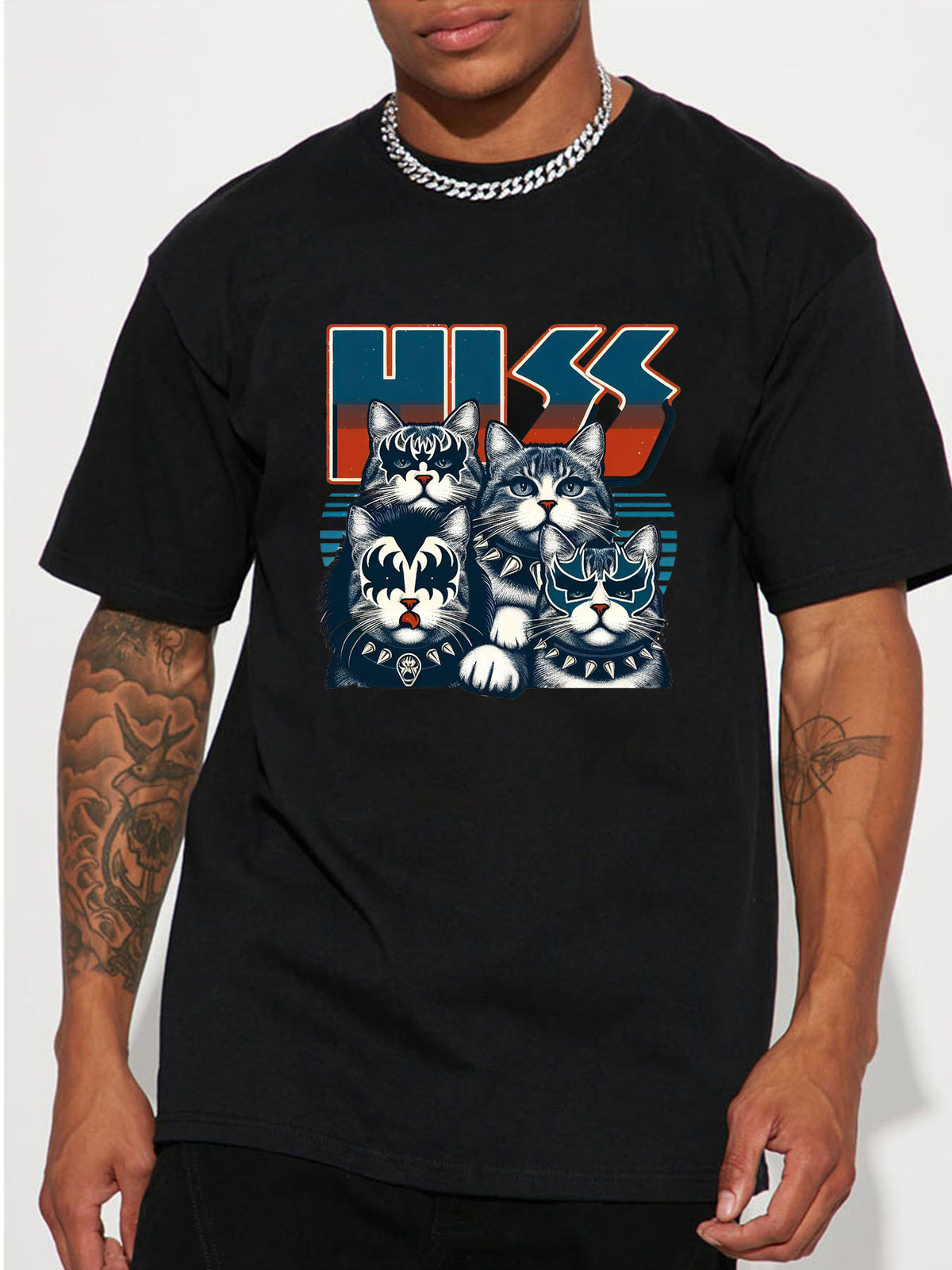 KIKIMORA Short Sleeved, Round Neck, Unique Cat Print T-shirt