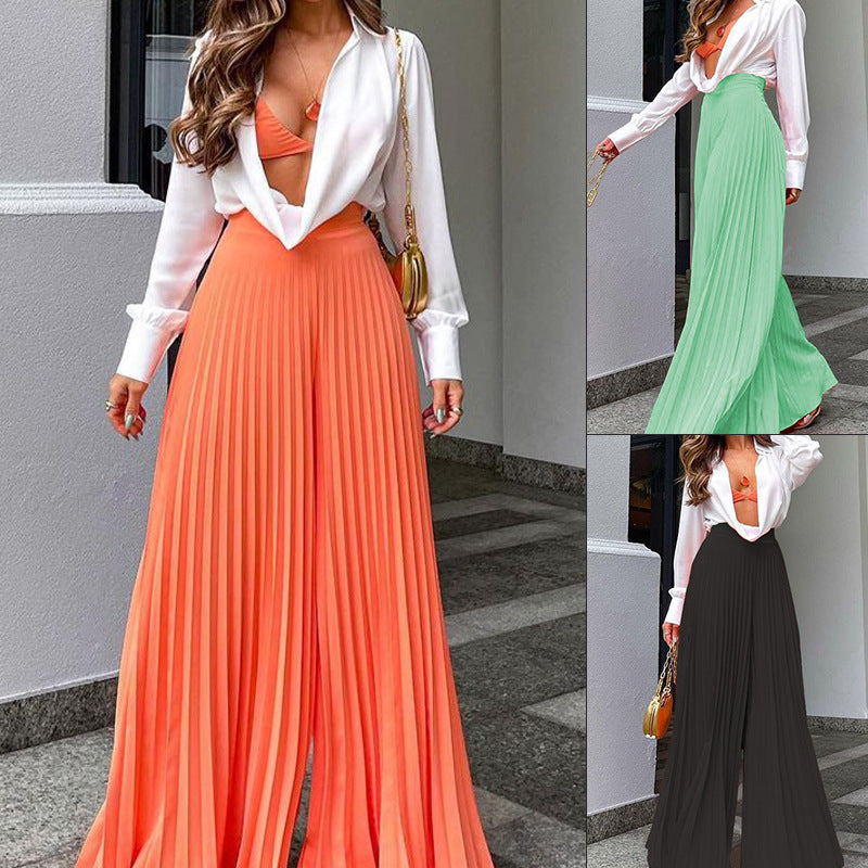 Pantalones anchos largos plisados