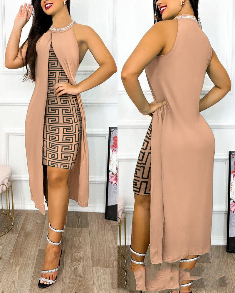 KIKIMORA Vestido sin mangas con abertura de color liso