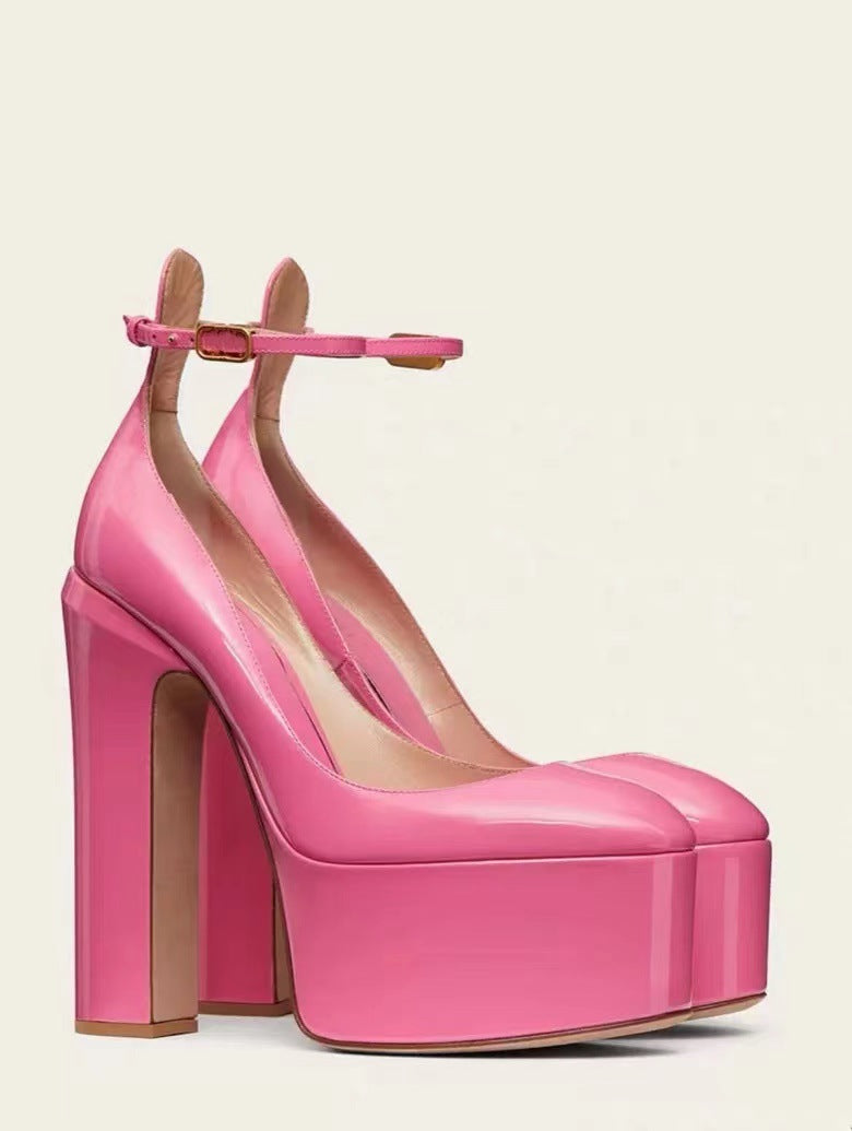 Zapatos con tacones altos y anchos y plataformas.