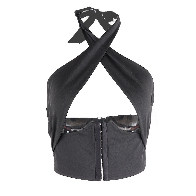 KIKIMORA Top corto cruzado sexy con cuello halter.