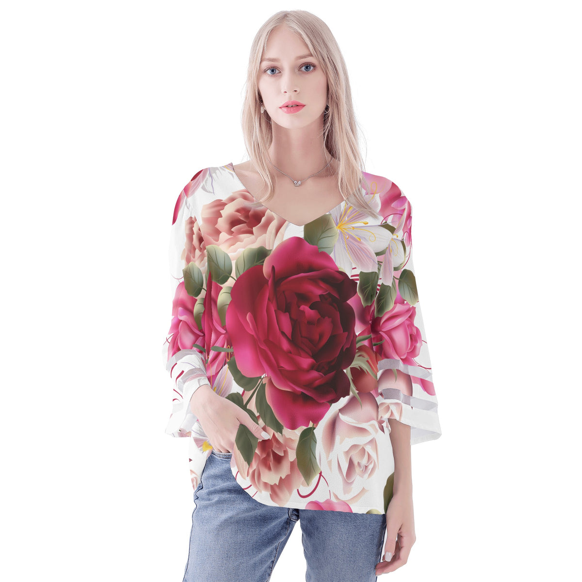 * Diseñado con cuello en V, puño ancho y manga tres cuartos.