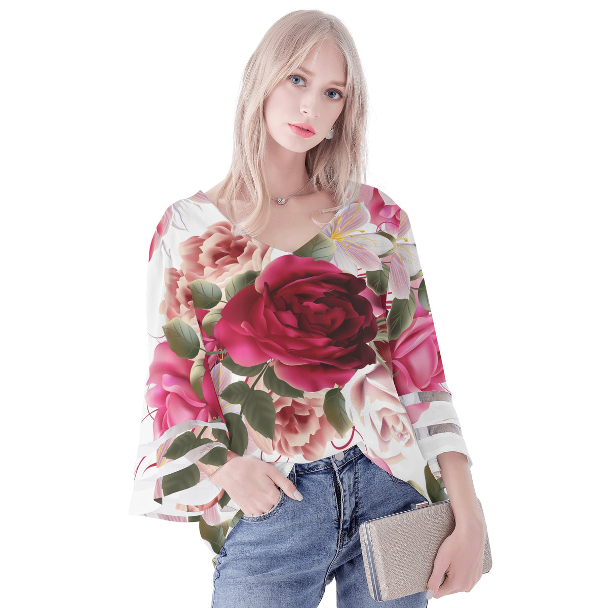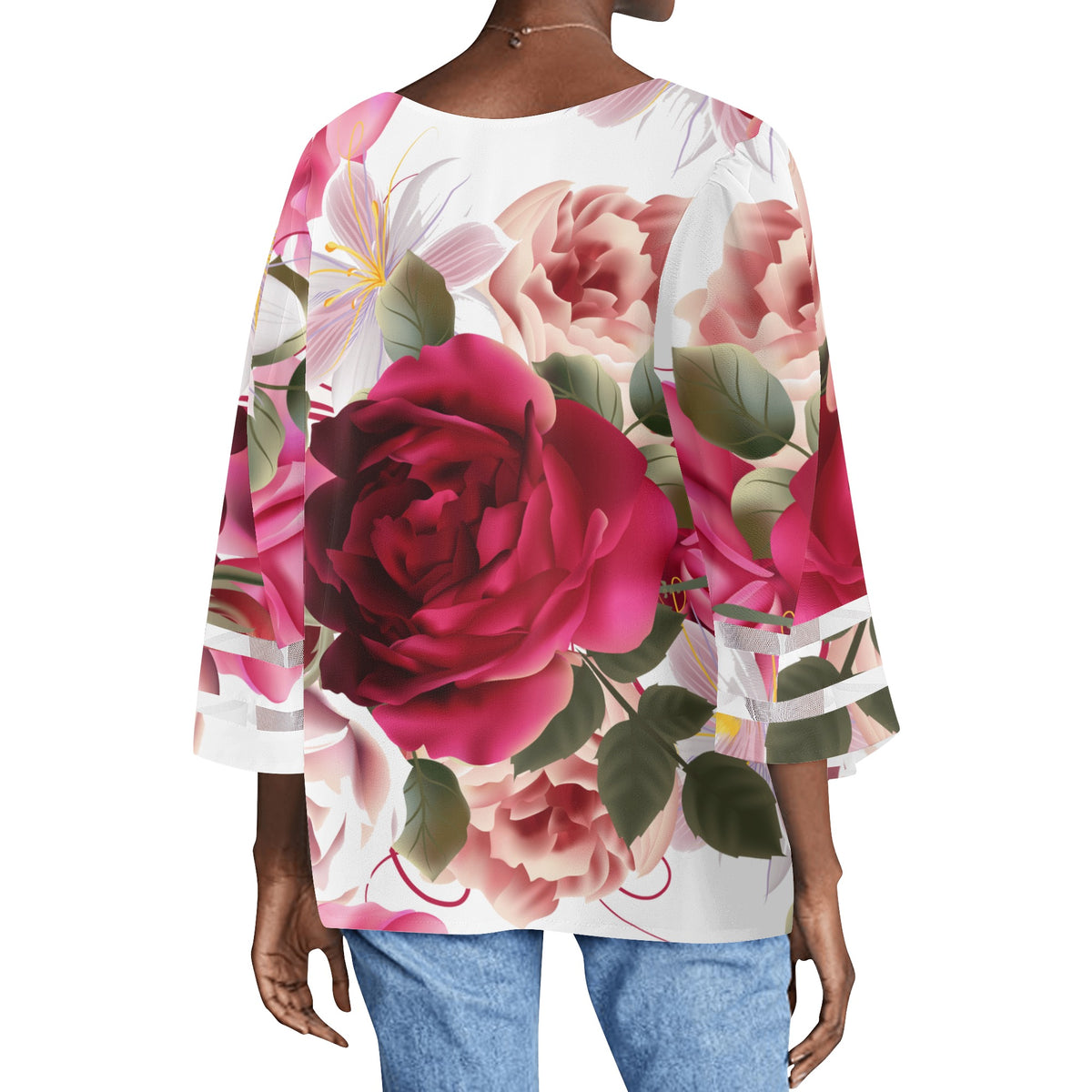 Confeccionada con un delicado estampado floral, esta blusa combina sin esfuerzo feminidad con un toque de estilo moderno, lo que la convierte en una adición versátil a cualquier conjunto de moda.