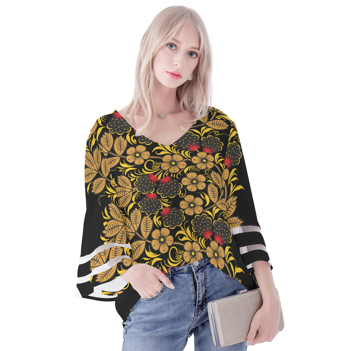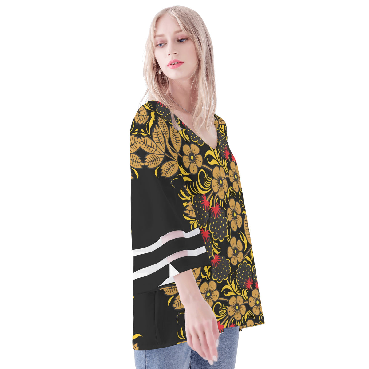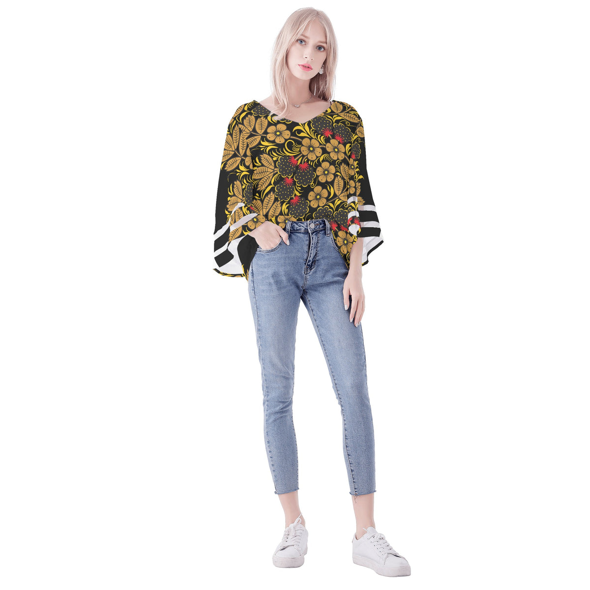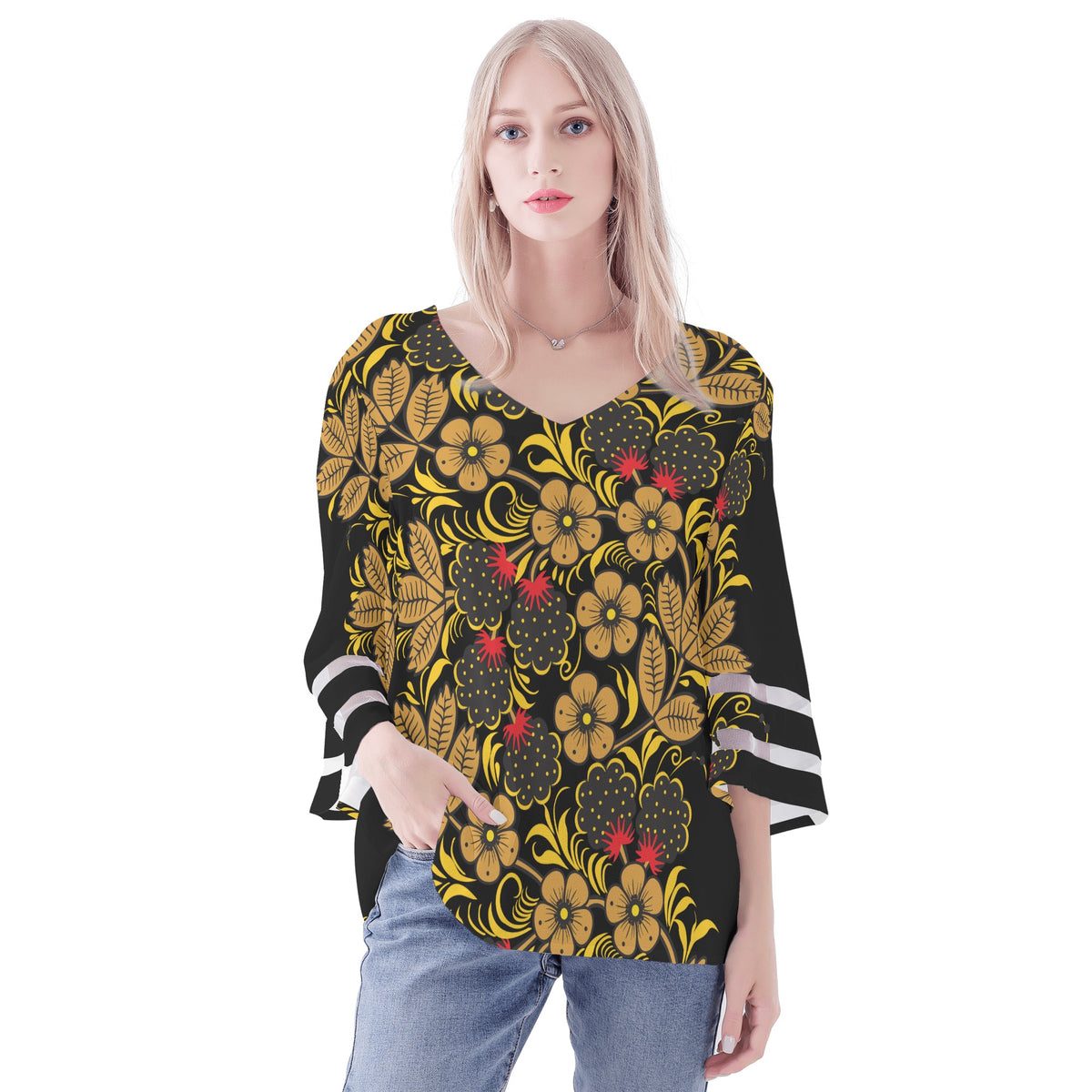 Presentamos la blusa de manga abullonada con estampado Khokhloma de KIKIMORA: una impresionante combinación de elegancia y estilo. Esta blusa con estampado floral en negro y dorado es una verdadera declaración de moda, perfecta para cualquier ocasión. El intrincado estampado Khokhloma añade un toque de encanto tradicional, mientras que las mangas abullonadas aportan un toque moderno. Confeccionada con materiales de alta calidad, esta blusa ofrece comodidad y durabilidad. Ya sea que te estés vistiendo para un evento especial o agregando un toque de sofisticación a tu look diario, esta blusa es una incorporación imprescindible a tu guardarropa.