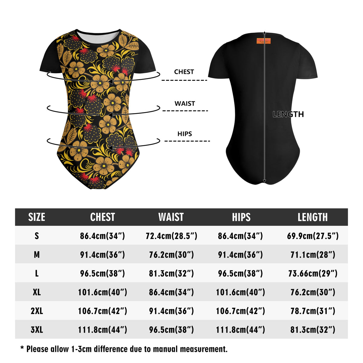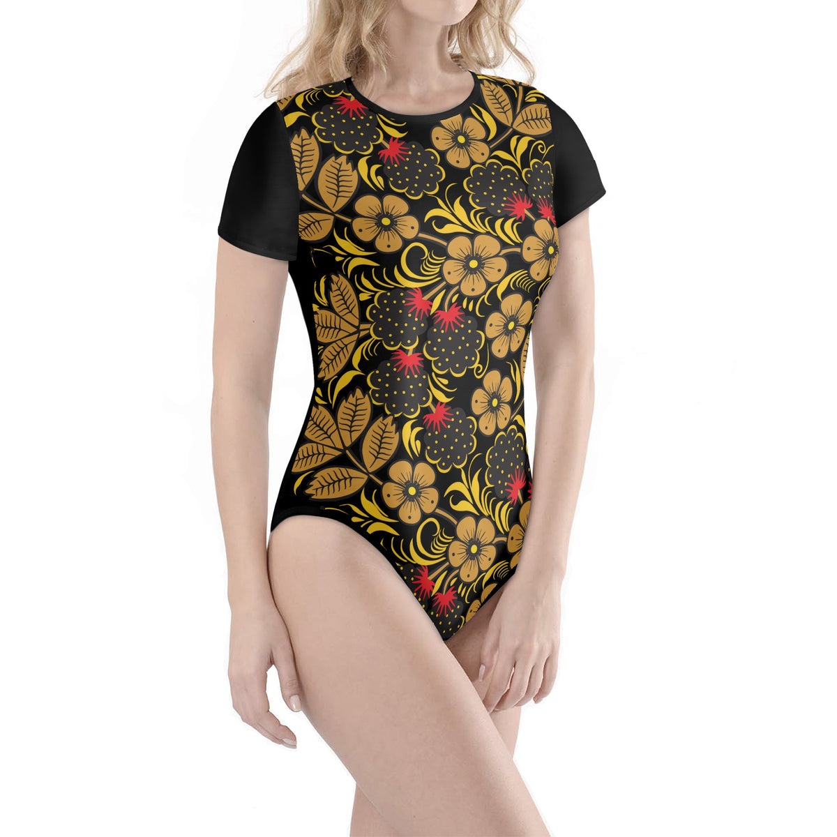 KIKIMORA Body de manga corta suave con estampado Khokhloma