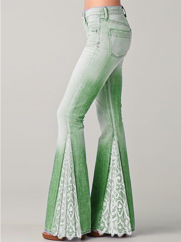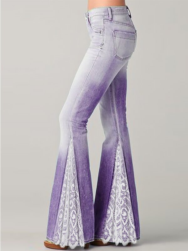 Pantalones Vaqueros Con Volantes Y Costuras De Encaje Degradado De Moda