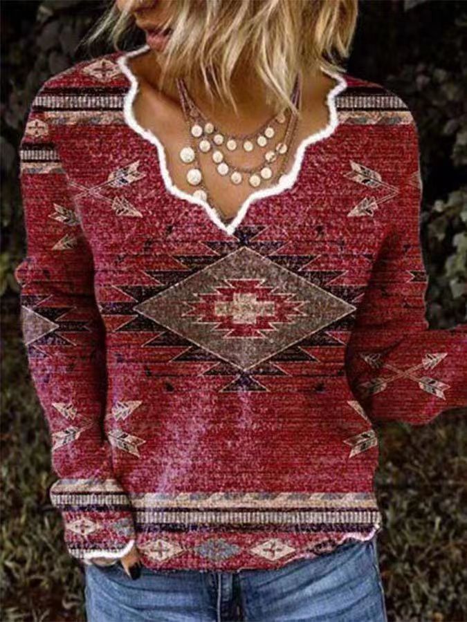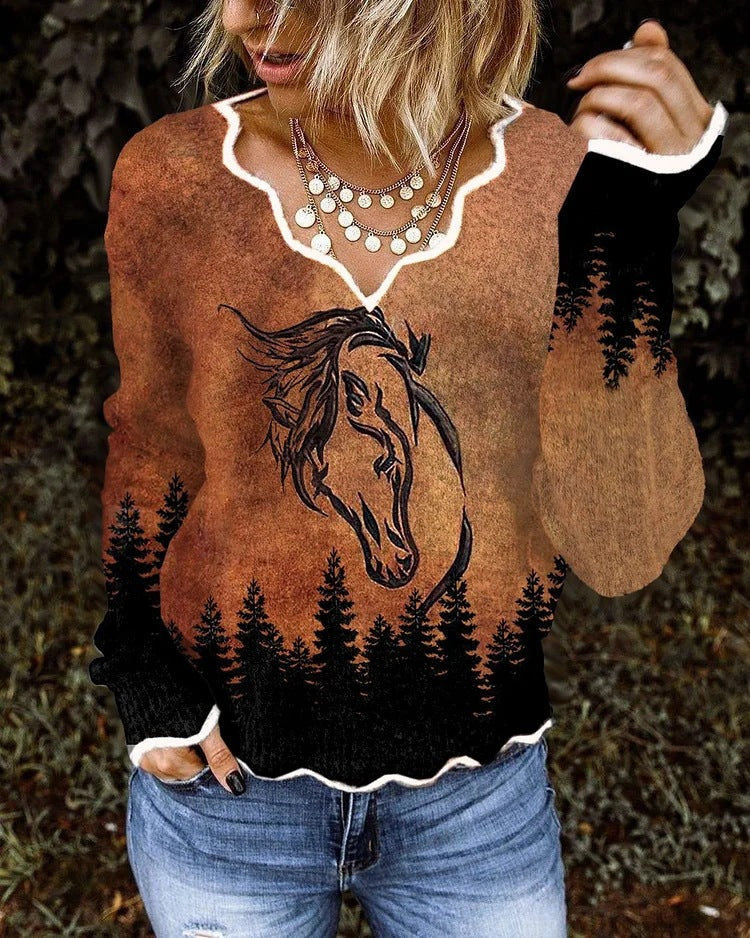 Top estampado 3D con escote ondulado