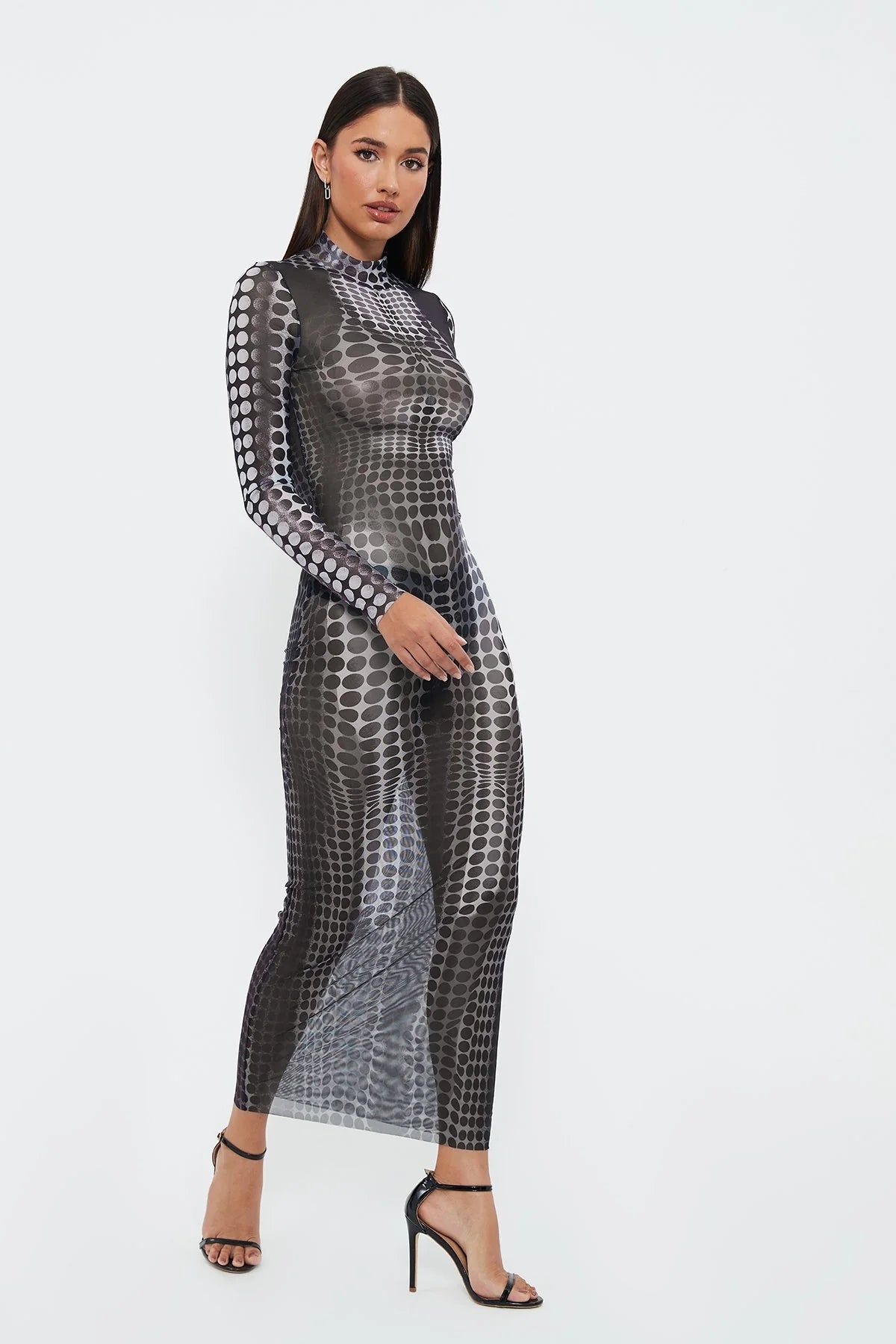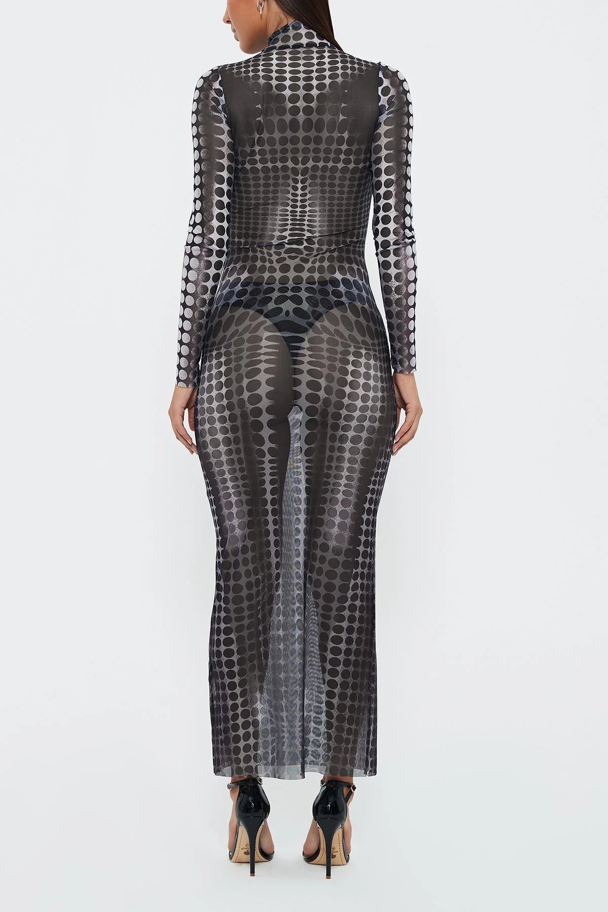 Robe longue moulante taille haute imprimée en maille transparente