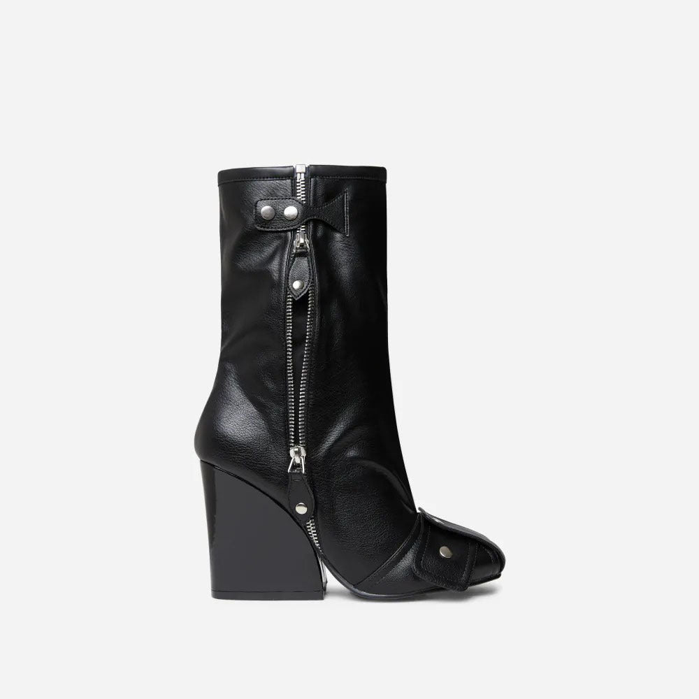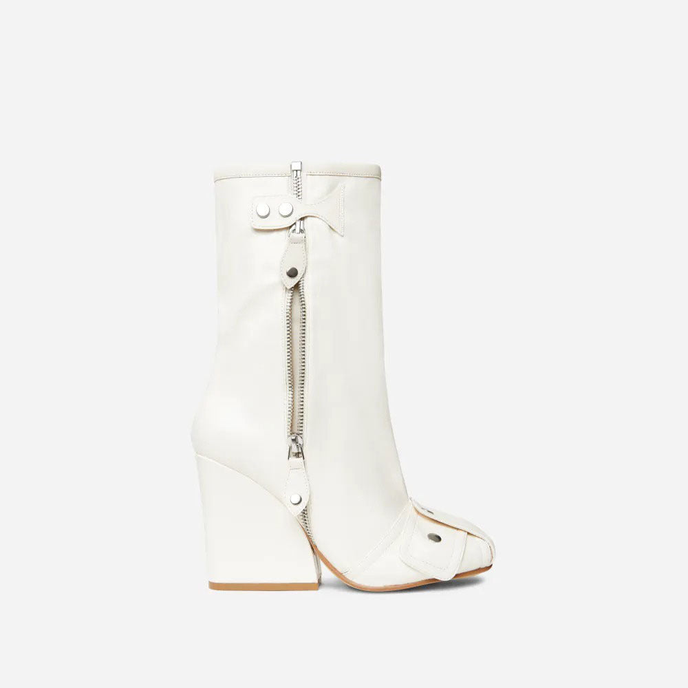 Bottes à talons compensés et bout rond en cuir avec fermeture éclair latérale