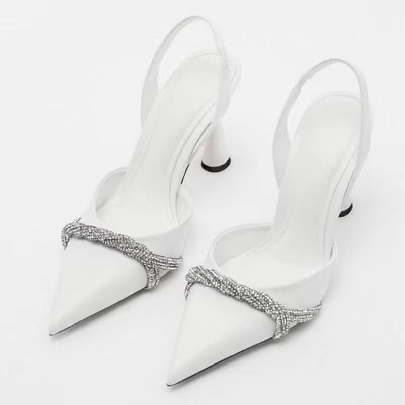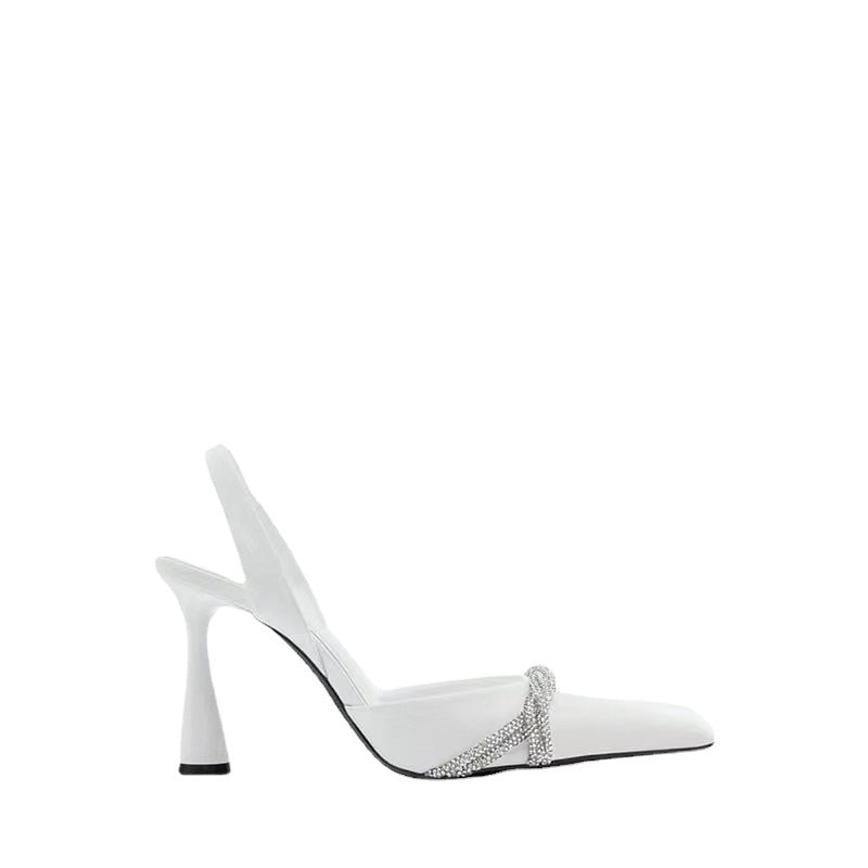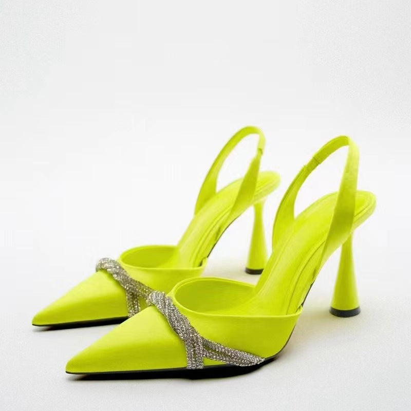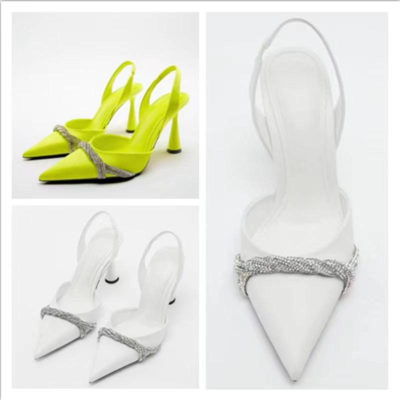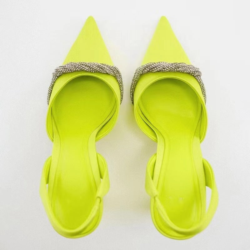Escarpins à talon ouvert et talon pyramide. avec bordure pailletée