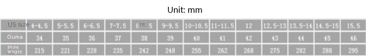 Size: 34, 35, 36, 37, 38, 39, 40, 41, 42, 43, 44, 45, 46