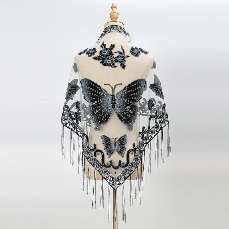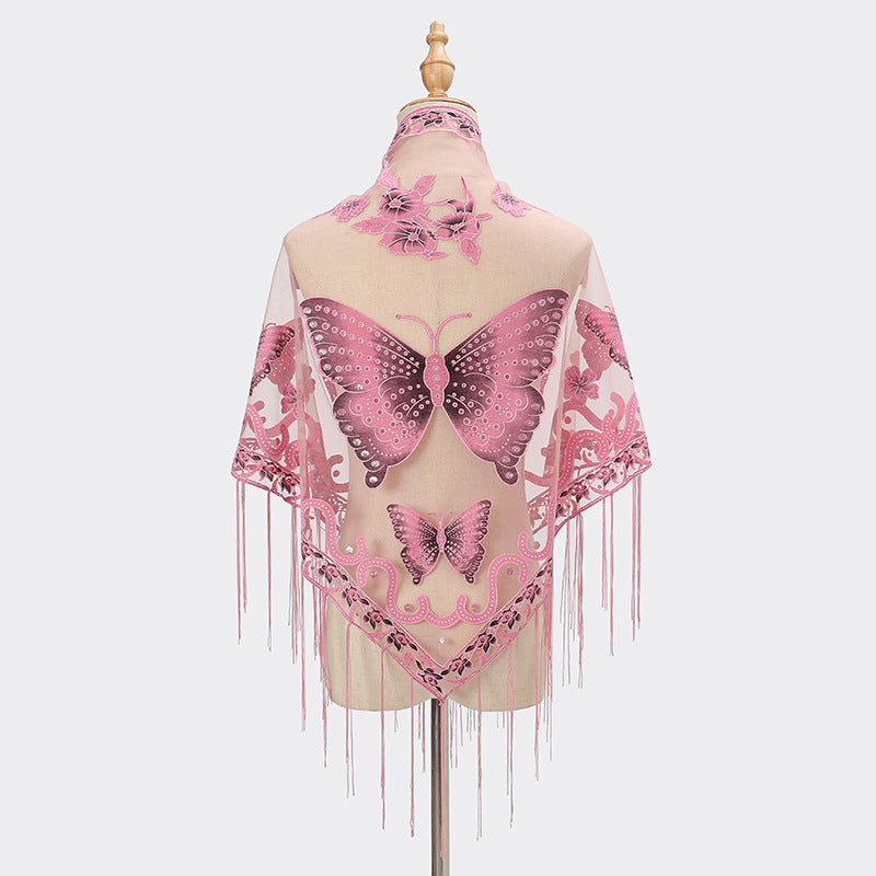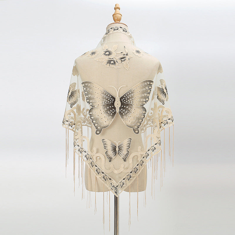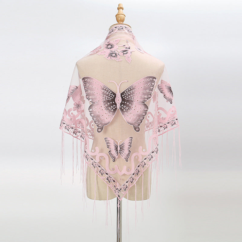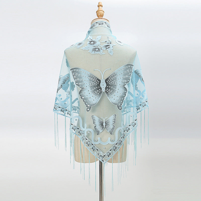 Écharpe Triangle de Couleur Unie ajourée en Dentelle pour Femme