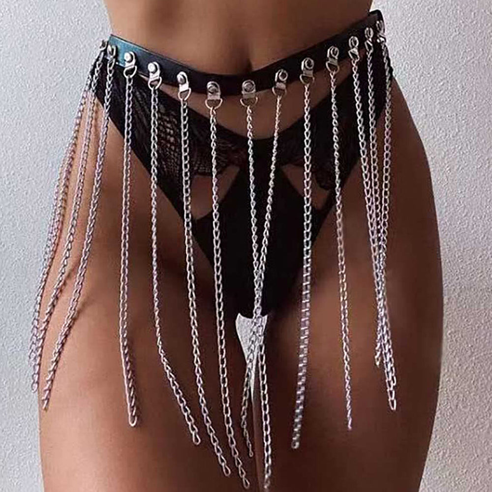 Ceinture en PU pour femmes, Punk, Sexy, Club, danse de rue, chaudasse, chaîne, frange, articles en cuir