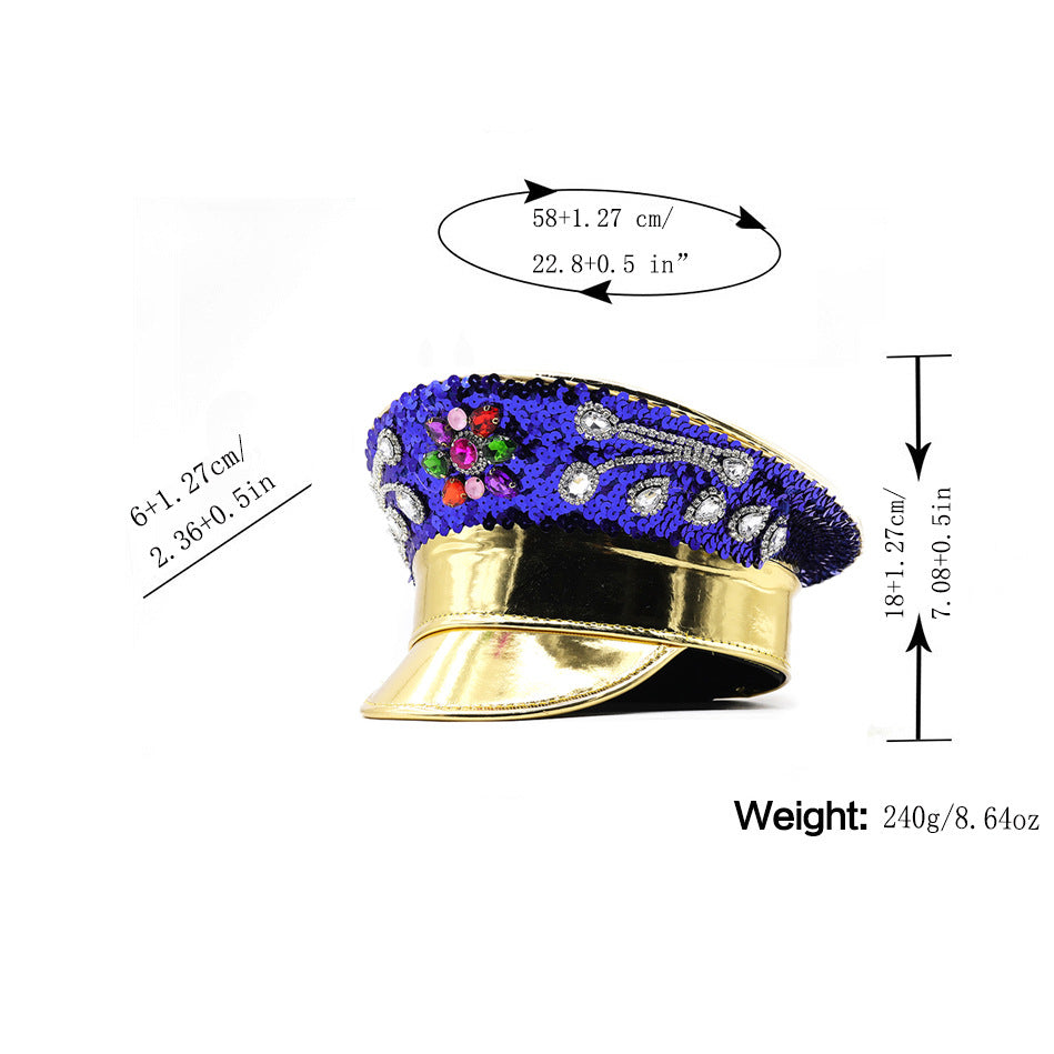 Couleur: Chapeau Cuir Doré Paillettes Bleues