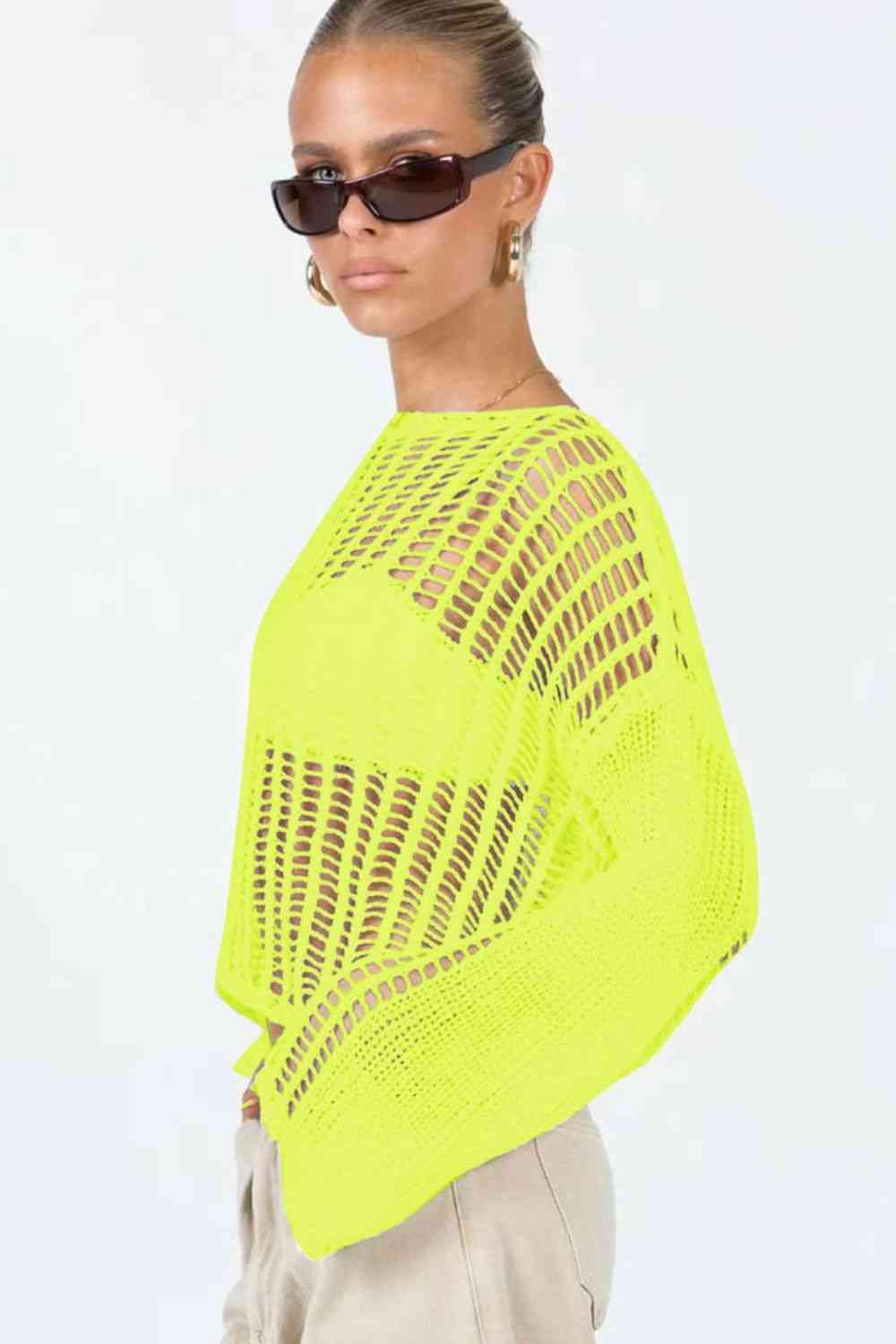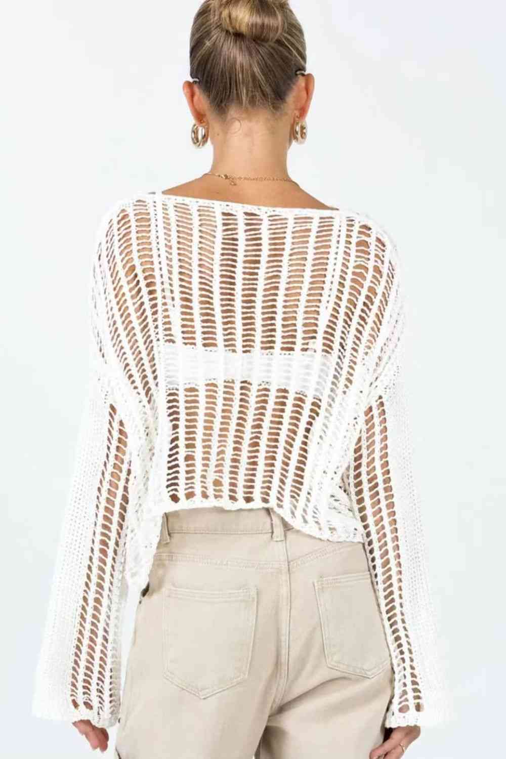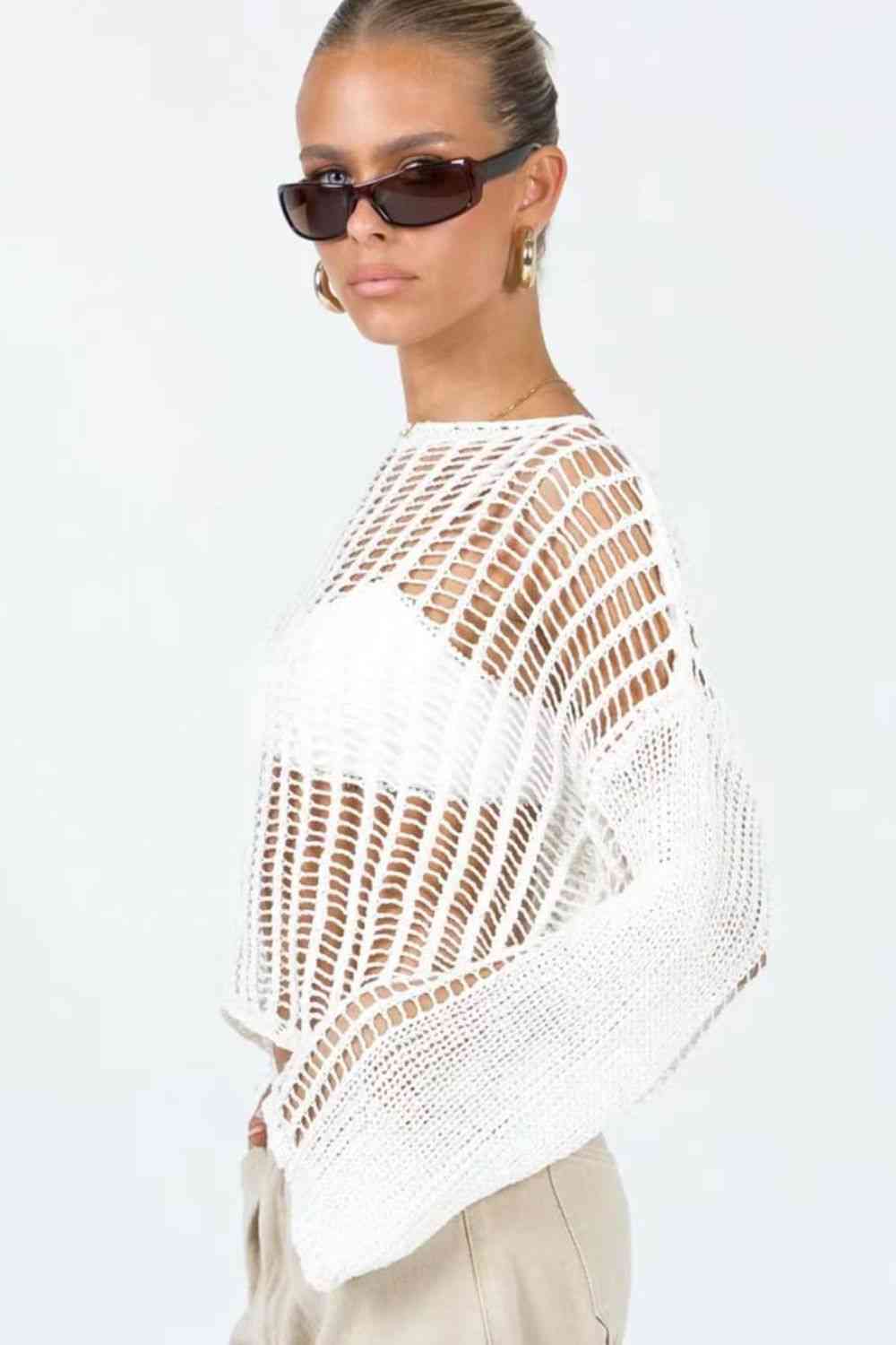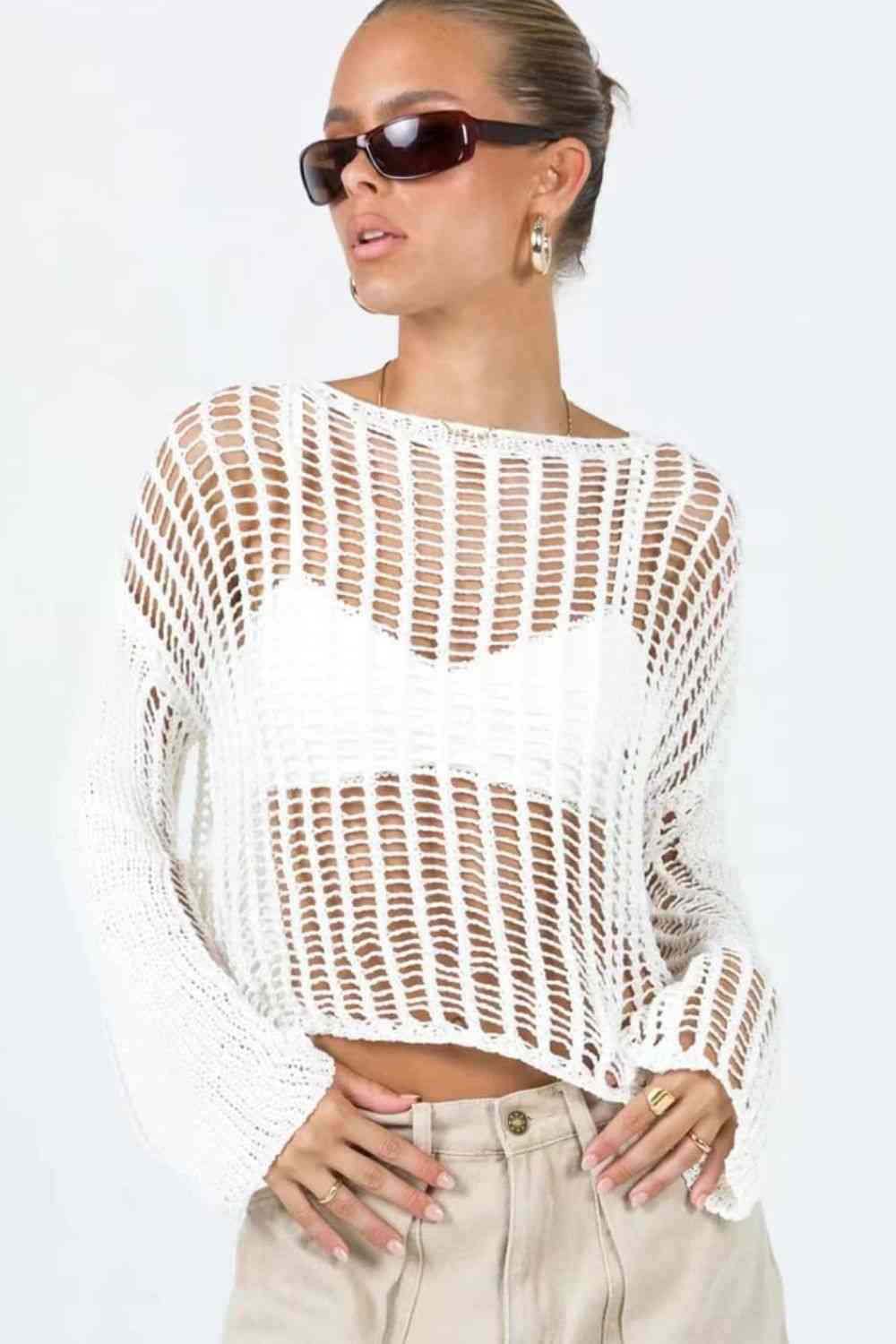 Cache-maillot ajouré à manches longues et col bateau