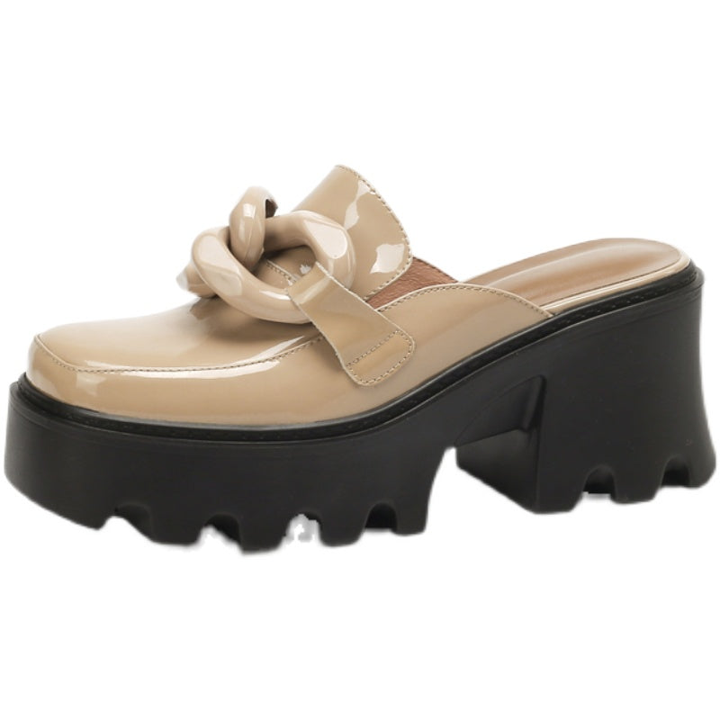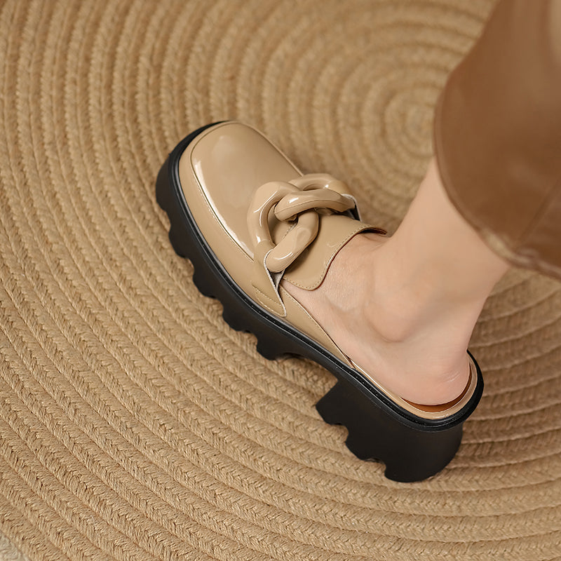 Chaussons en cuir sur plateforme avec talon ouvert.