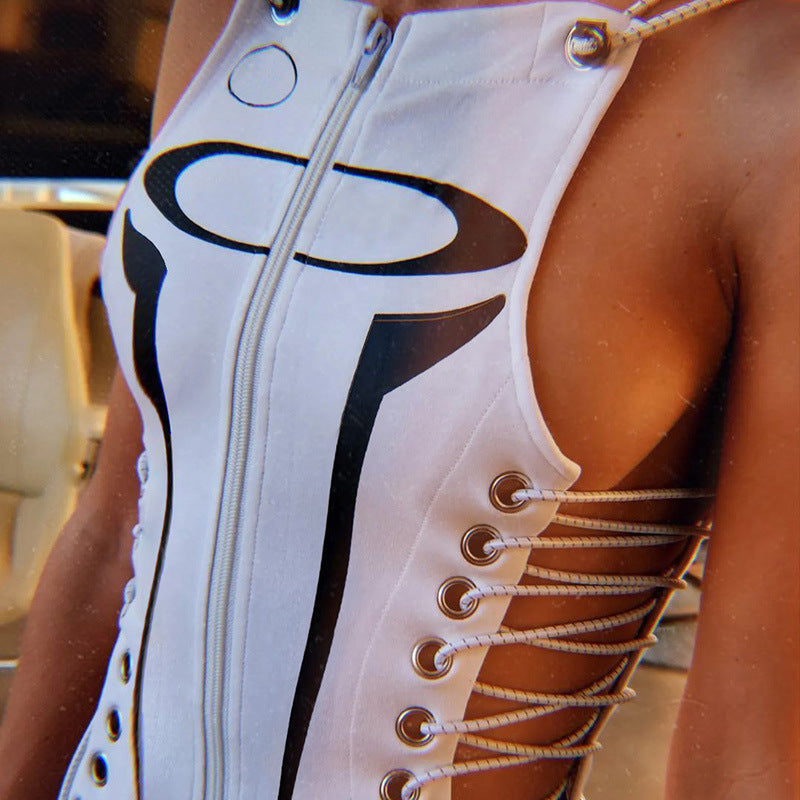 KIKIMORA Robe slim sans manches avec liens et fermeture éclair