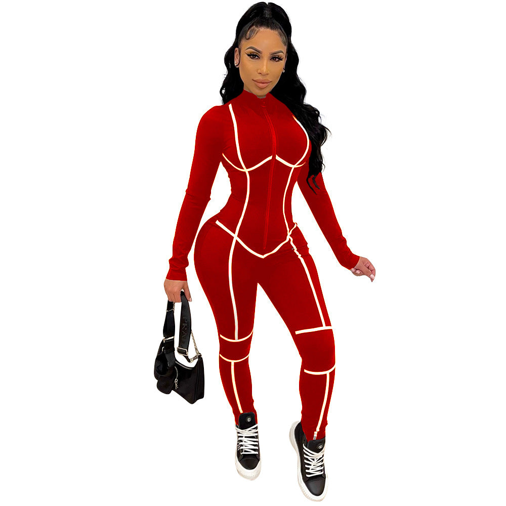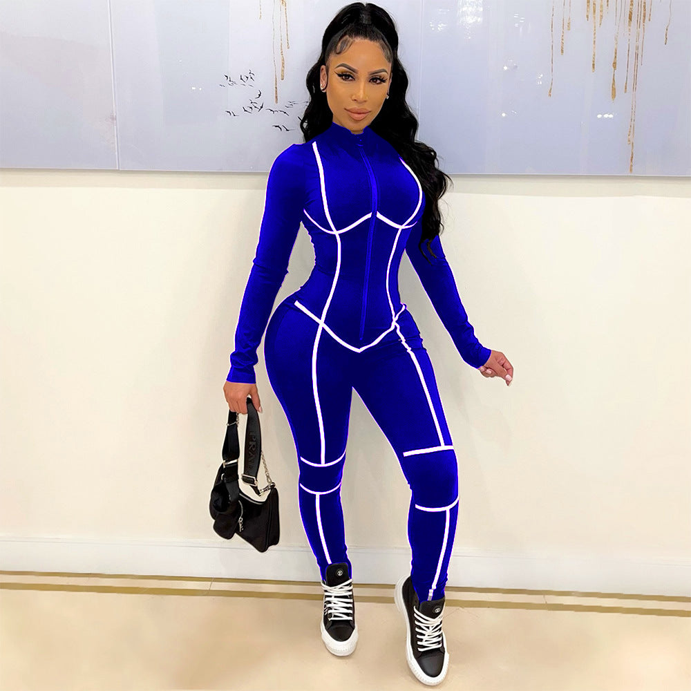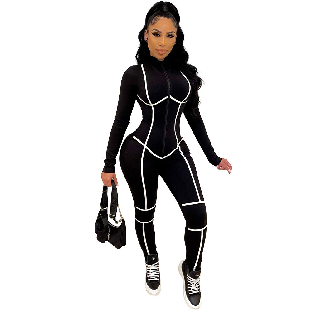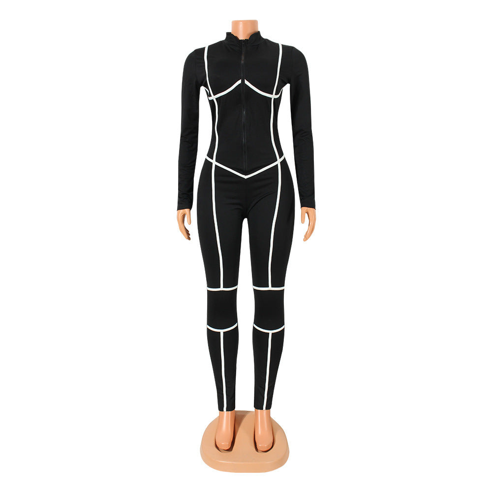 KIKIMORA Pantalon combinaison à fermeture éclair et coutures