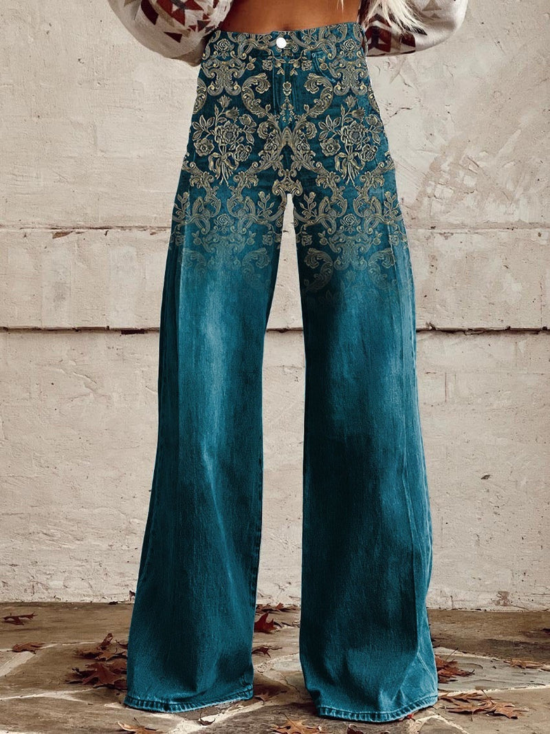 KIKIMORA Wide-legged Anti-jeans 3D Digital Printing Pants
