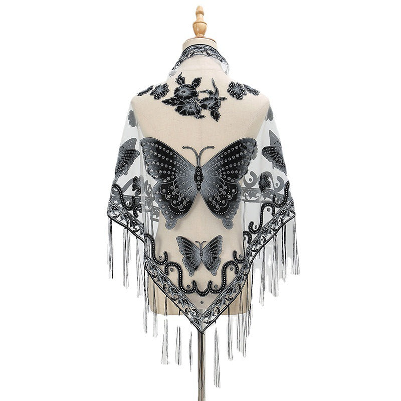 Écharpe Triangle de Couleur Unie ajourée en Dentelle pour Femme
