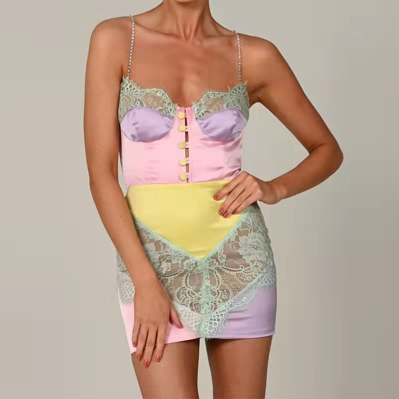 Robe en dentelle avec bretelles et chaîne