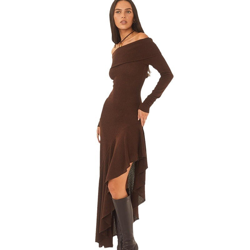 Robe de soirée en maille transparente à manches longues pour l'industrie lourde