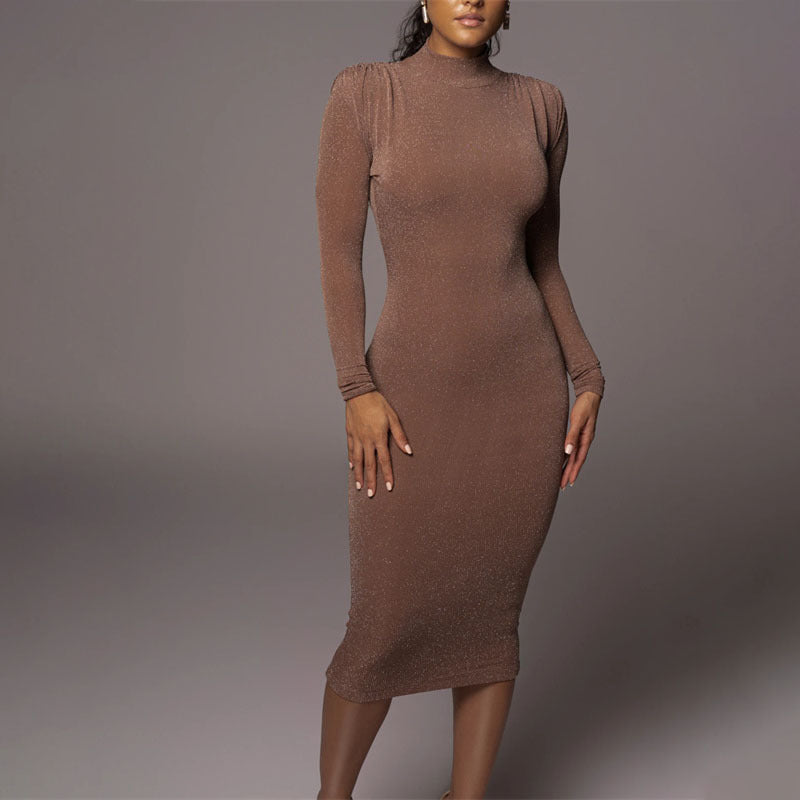 Robe Slim Sexy à Manches Longues de Couleur Pure