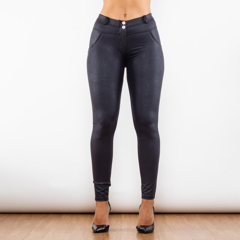 Shascullfites Melody Crackle Pantalon taille moyenne enduit noir