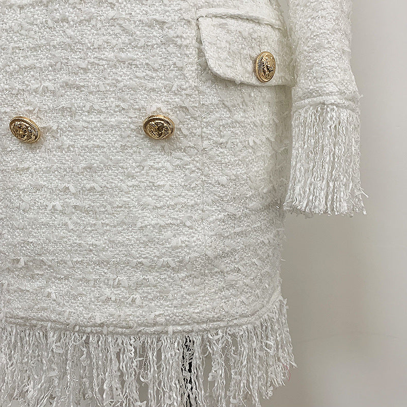 KIKIMORA Double Breasted V-neck Tassel Woolen Dress