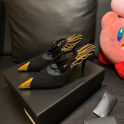 Talons hauts, chaussures à bout pointu avec sangle et boucle en métal
