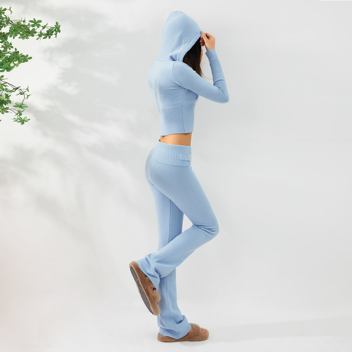 KIKIMORA 2 pièces costumes tricotés à capuche, Cardigan à manches longues et pantalon taille haute