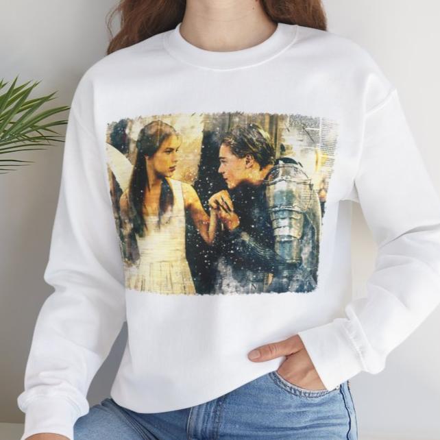 Romantic Couple Romeo and Juliet fan art Leonardo Dicaprio movie fan Unisex Crewneck Sweatshirt for Leonardo Dicaprio fans